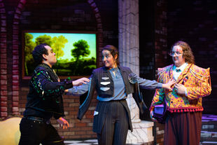 Inspired by the opulence of 1660s and the drama of the play that echos into modern day reality television, this production landed in a blended alternate universe full of color and texture. Featuring panniers, a rich boy playing at being punk, exaggerated proportions, and avant garde makeup, the costumes highlight the chaos of this classic comedy.